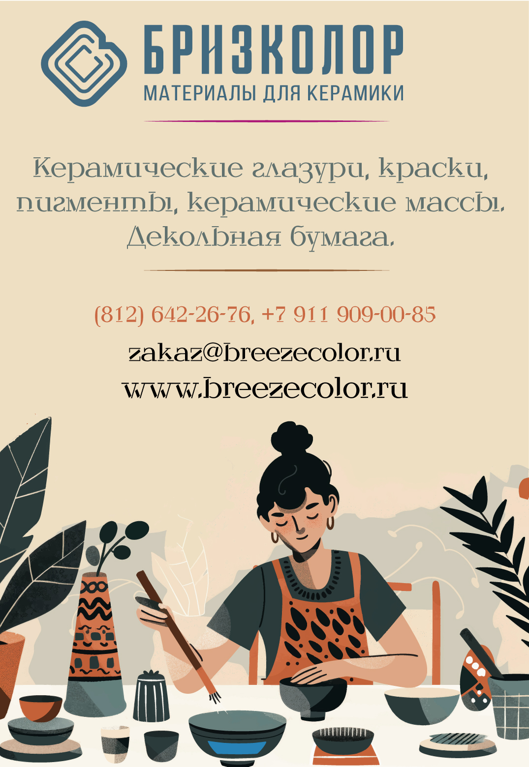 Производство керамических глазурей, ангобов и подглазурных красок. Сырье для производства посуды и керамики бытового и декоративно-художественного назначения: - фарфоровые и керамические массы, пигменты, мелющие тела, краски для росписи фарфора (обжиговые и декольные), надглазурные краски, эмали по стеклу, керамические краски SHINCERAMIC COLTD (Корея), декольная бумага и лаки, печи для обжига, огнеупорные материалы.