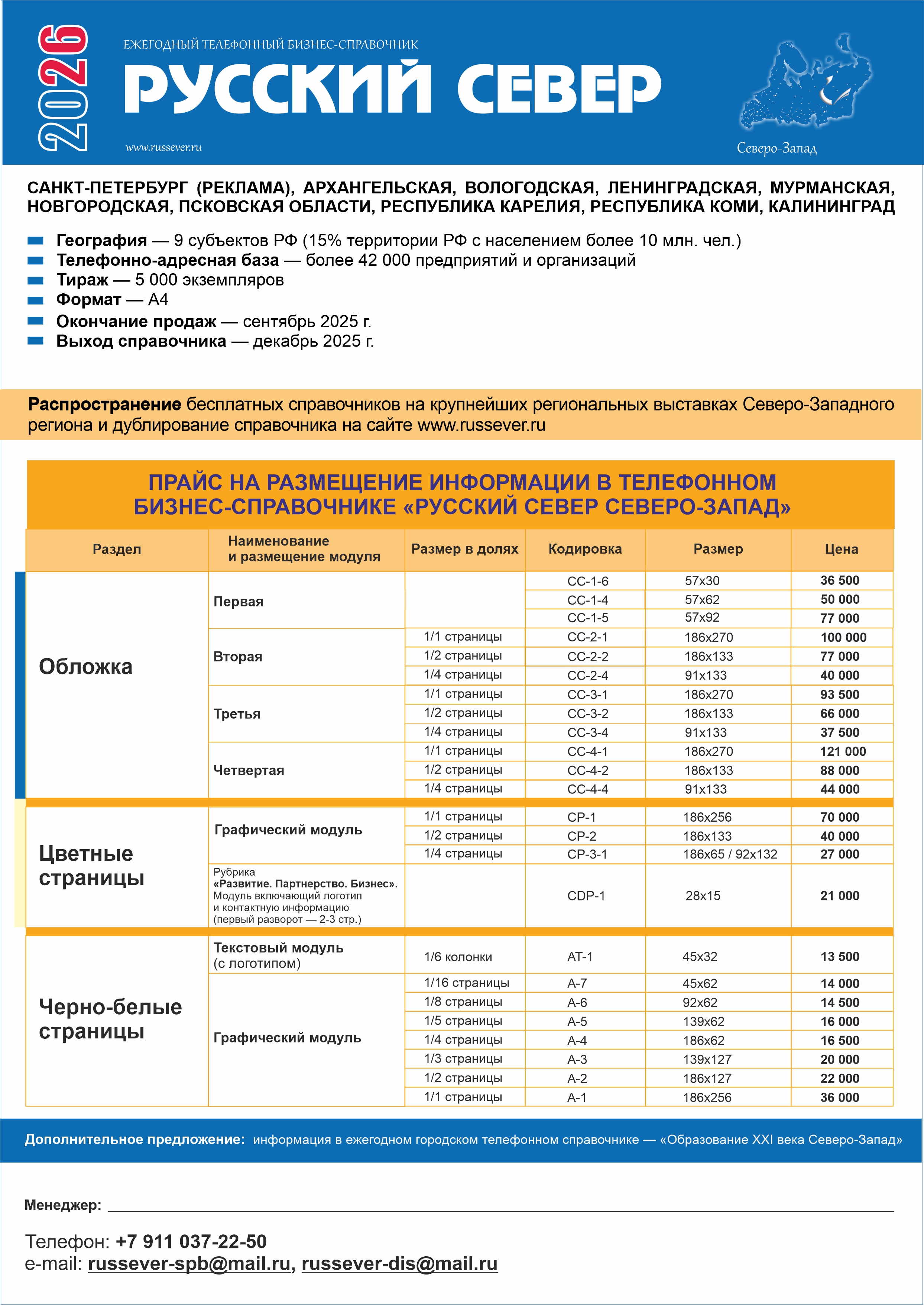 Прайс на размещение рекламы в справочнике