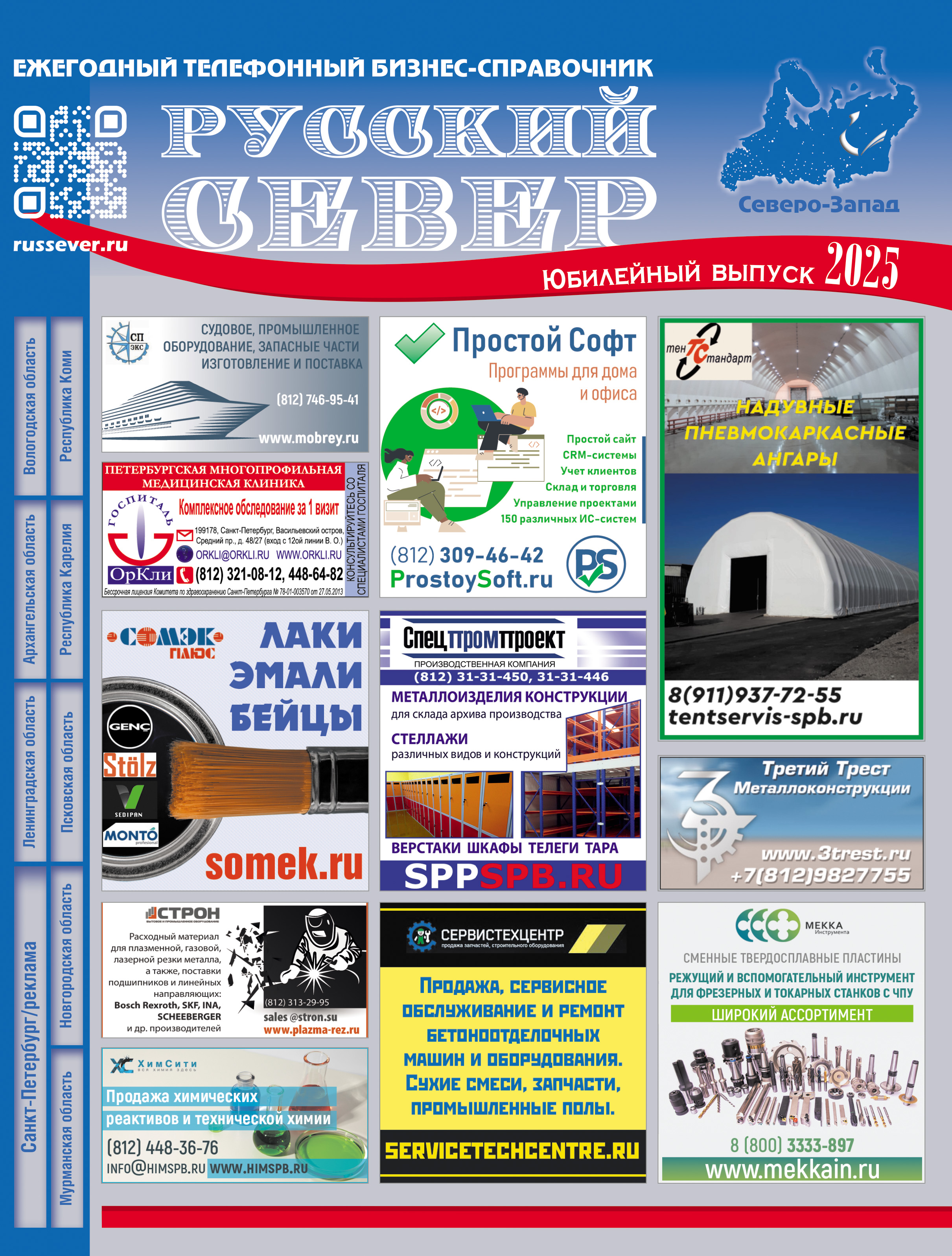 Справочник предприятий и организаций Северо-Западного региона России, содержит информацию о предприятиях 8 субъектов РФ, ориентирован как на деловых людей, так и на частных лиц. Издание распространяется по телефонно-адресной базе Северо-Запада России, на крупнейших региональных выставках Северо-Западного региона, региональными курьерскими службами, УФПС. Таким образом, мы обеспечиваем выход Ваших интересов на регионы.